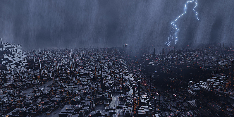 We then move into the world of shaders. First we'll go step by step through the process of creating a procedural city building texture with glowing windows and sci-fi randomness. Then, we get a bit crazy and use shaders to create fake volumetric clouds and atmosphere that can render a billion (exaggeration) times faster than regular volumes in Blender. Things then get really out of hand when we throw in some rain and lightning just for fun.